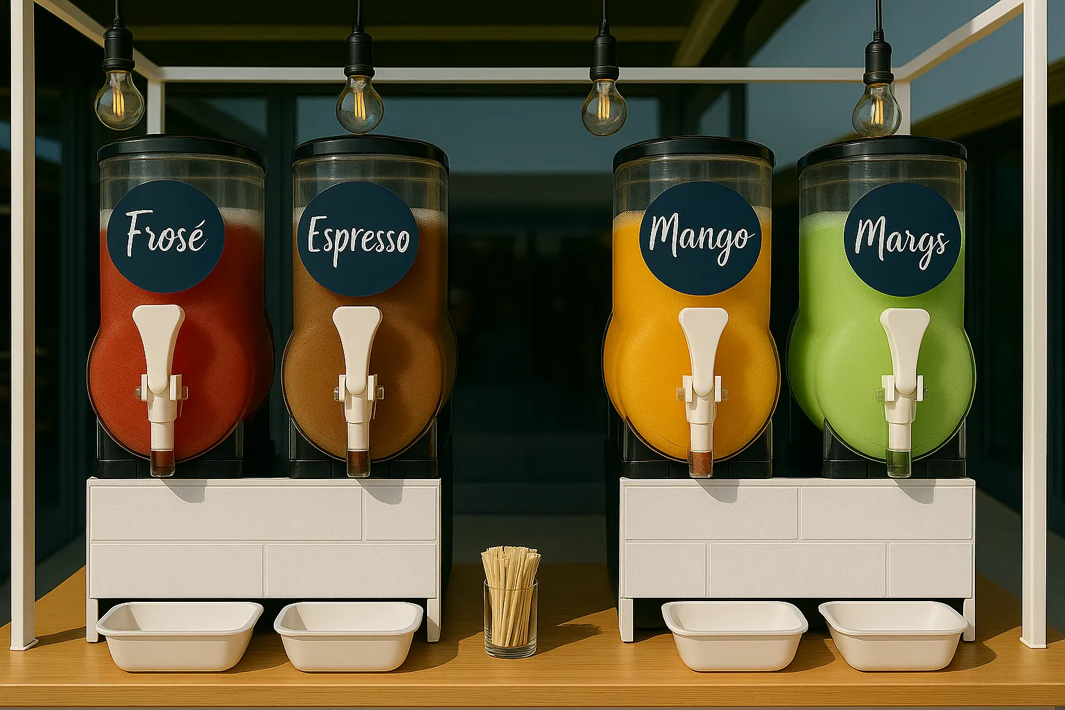 - Premium Equipment: We use top-tier commercial-grade frozen drink machines that keep drinks smooth, frozen, and flowing for hours—no clogs, no drama.